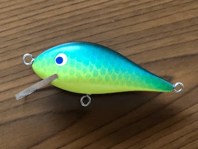 初作品として、クランクベイトという、主に、ブラックバスを狙う際に使用されるルアーを作りました。リップで水の抵抗を受けて、ボディを揺らし、魚にアピールするルアーです。