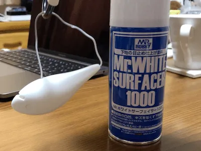 - Surfacerを塗布 ※ルアーの前後の穴に針金を入れ持ち手を作って置いてから塗布